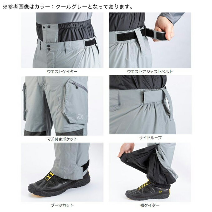【DAIWA レインマックス ウィンターパンツ DW-36009P】●ウエストと裾のゲイター仕様採用で極めて高い保温性を体感できるウィンターパンツ●防水性、透湿性、防風性を兼ね備えたレインマックス(R)2層素材を採用。