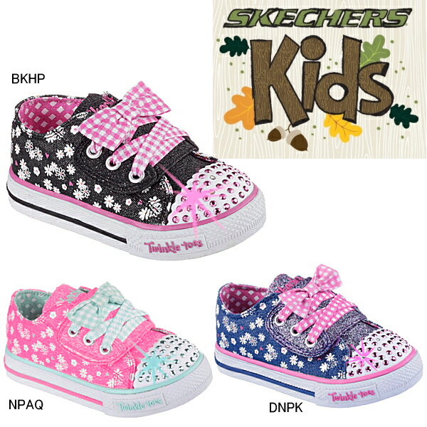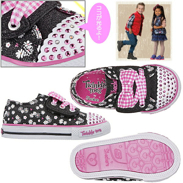 スケッチャーズ 光る靴 キッズ スニーカー SKECHERS デイジー柄プリント 黒