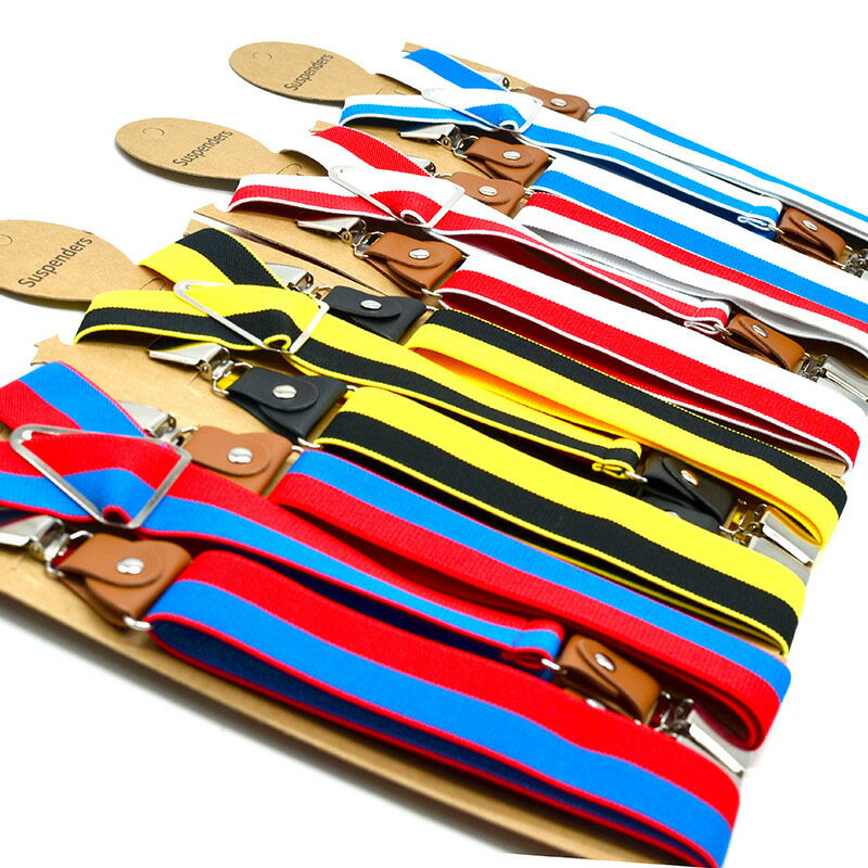 カラフル2色からなるお洒落な4クリップデザインのメンズ用サスペンダー。