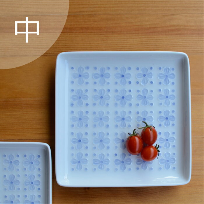 【白山陶器】【波佐見焼】【染付小花】【正角皿中】ナチュラル69 結婚式の引き出物やギフトに! 食器 おしゃれ 内祝い 染付小花 正角皿中 食器 角皿 北欧 肥前焼