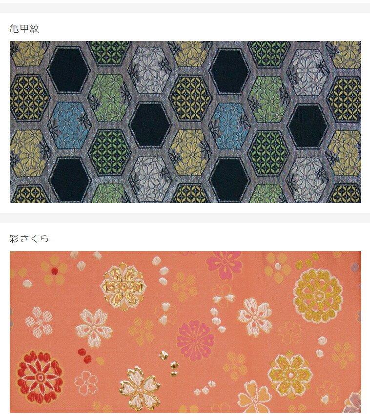 商品名 折りたたみ杖用 杖袋(京都西陣織) カラー 七宝散らし華紋・亀甲紋・唐草紋・彩さくら・子猫紋 止め方式 マグネット 素材 ポリエステル 他、裏地はポリエステル サイズ 240×110mm 注)沖縄、離島など一部地域は、別途中継料が必要となる場合があります。